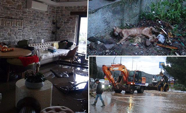 Muğla'nın Bodrum ilçesinde, sağanak yağmur nedeniyle çok sayıda ev ve iş yerini su bastı. Bodrum-Turgutreis kara yolu sular altında kalırken, araçların geçişi kontrollü olarak sağlanabildi. Belediyeye bağlı temizlik ekipleri ev ve iş yerlerinde su tahliye işlemlerini aralıksız sürdürdü, hasar tespit çalışması yaptı.