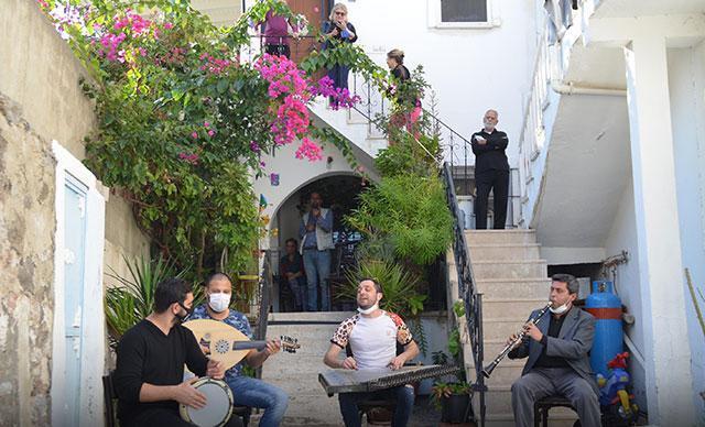 Yeniköy Mahallesi'nde bir sitede yaşayan kanun sanatçısı Aycan Adalı ud, klarnet ve darbuka çalan 3 arkadaşıyla, koronavirüs pandemisi nedeniyle kurallara uyarak evden çıkmayan komşularına konser verdi. Evinin bahçesinde verdikleri mini konser ile komşularını eğlendirip, müzik ziyafeti sunan Adalı ve arkadaşları, komşularına keyifli anlar yaşattı.