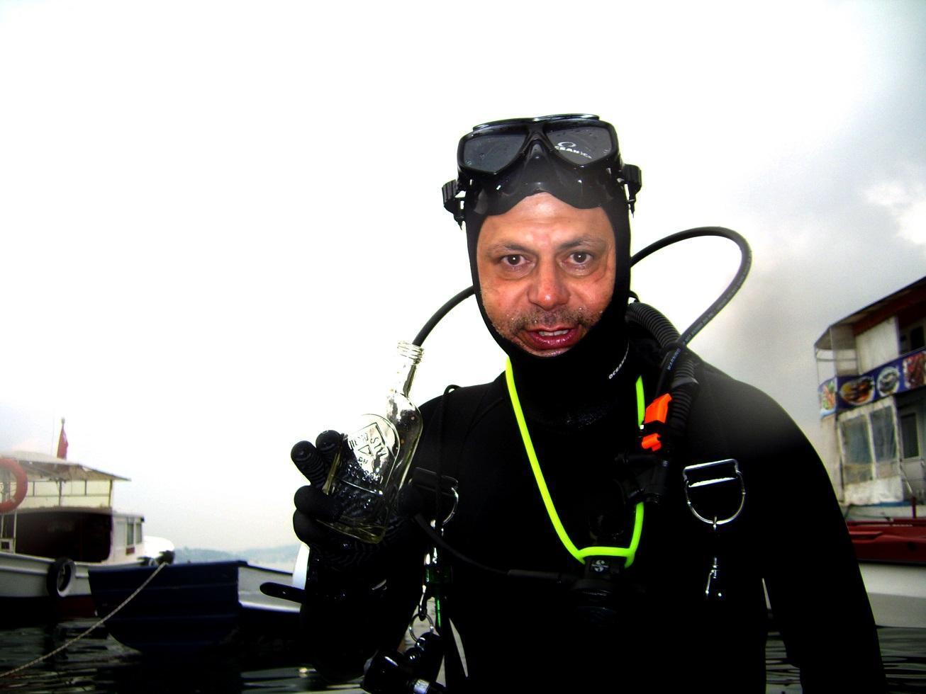 Otuz yılı aşkın bir süredir profesyonel dalgıçlık yapan deniz biyoloğu Hakan Kabasakal, Boğazı’ın dibinden çıkardığı, tarihi Osmanlı Dönemi’ne uzanan çeşitli şişelerle İstanbul’un tüketim tarihine ışık tutuyor. Kurşun dalışı da yapan ve denizi ağır metallerden temizleyen Kabasakal, “Toplayıcı dalgıçlığa hem kendime ekonomik katkı sağlamak hem de ekolojiye bir faydam olsun diye başladım” dedi.