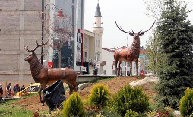 Bolu'da ayı heykeli yerine yapılan geyik heykelleri meydana konuldu