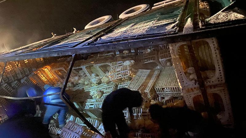Bolu'da canlı tavuk yüklü kamyon devrildi; sürücü yaralandı, yüzlerce hayvan öldü