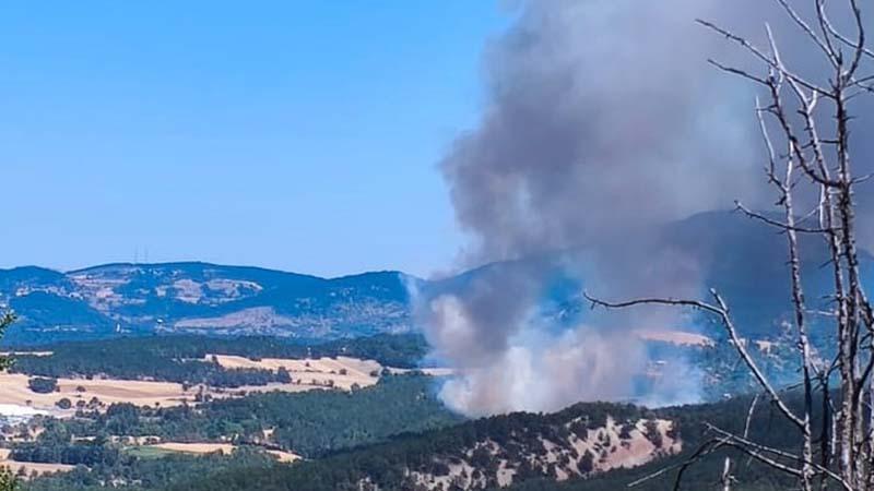 Bolu’nun Mudurnu ilçesine bağlı Göncek köyü Camiyanı Mahallesi yakınlarında çıkan orman yangını devam ediyor. Yangına, 5 helikopterle havadan Orman Bölge Müdürlüğü’ne bağlı arazözlerle de karadan müdahale ediliyor. Yangın, bölgedeki tavuk kümeslerinin bulunduğu alanlara yaklaşırken, ekiplere köyde yaşayan vatandaşlar da su tankerleriyle destek verdi. Özel bir firmaya ait beton mikserleriyle de yangına müdahale ediliyor.