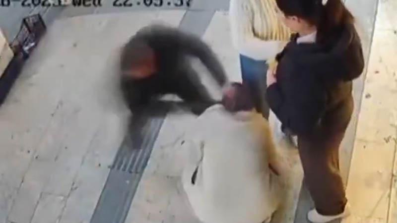 Gümüşhane'de kaldırımda bekleyen Nigar K.'nin (29) boşanma aşamasındaki eşi Oktay K. (39) tarafından bıçaklı saldırıya uğradığı anlara ait güvenlik kamera görüntüleri ortaya çıktı. Görüntülerde; çevredeki esnafın saldırganı, meyve kasaları ve tabureyle engellemeye çalıştığı anlar yer aldı.