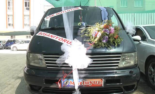 Boşanma davasına 'çok mutluyum, boşanıyoruz' yazdırdığı aracıyla gitti