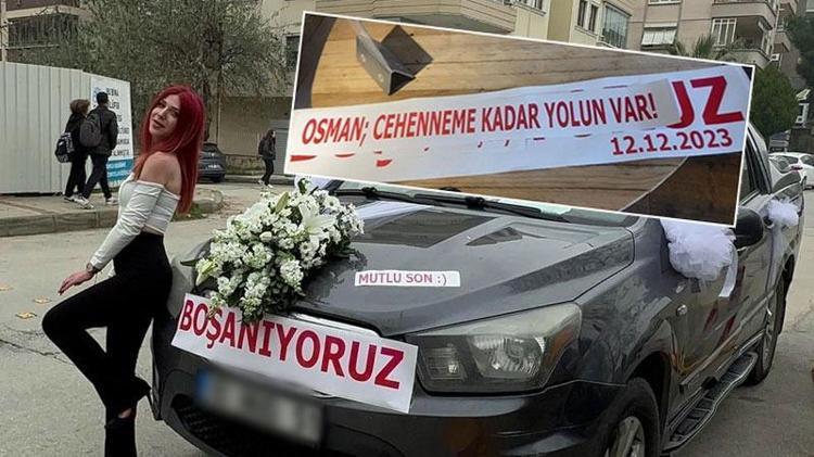 Boşanma davasına, 'Osman cehenneme kadar yolun var, boşanıyoruz' yazılı aracıyla gitti
