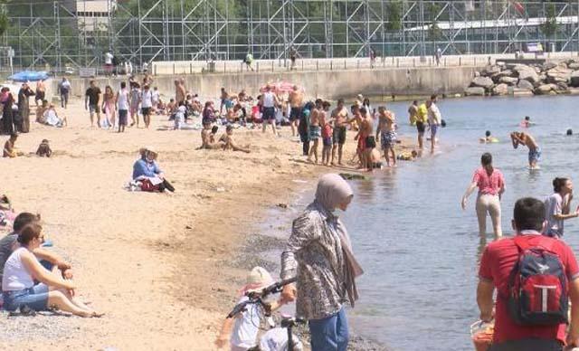 Sıcaktan bunalanlar Bostancı Sahili'nde denize girdiler.