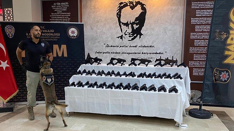 İl Emniyet Müdürlüğü Kaçakçılık ve Organize Suçlarla Mücadele ve Narkotik Şube Müdürlüğü ekiplerinin yaptığı çalışmada Bulgaristan'a çıkış yapacak TIR'da ruhsatsız silahlar bulunduğu belirlendi. A.D.'nin kullandığı TIR'ı takibe alıp durduran polis, eğitimli köpek ‘Kongar’ ile arama yaptı. Aramada TIR'ın dorsesinde ruhsatsız 50 tabanca, 50 şarjör, 4 yarı otomatik makineli tüfek ve şarjörleri ele geçirildi. Sürücüsü A.D., gözaltına alınırken, olayla ilgili soruşturma başlatıldı.