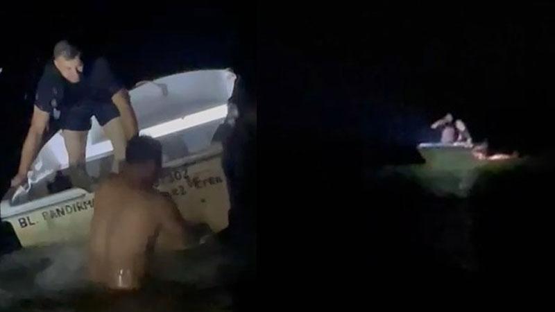 Olay, saat 21.00 sıralarında Yeniköy sahilinde, meydana geldi. Küçük bir balıkçı teknesi, kıyıya yakın noktada su almaya başladı. Teknede bulunan 3 kişi bağırarak, sahildeki vatandaşlardan yardım talebinde bulundu. Tesadüfen bölgede bulunan Karacabey İlçe Emniyet Müdürlüğü’nde görevli polis memuru Ahmet Mutlu, çevredeki bir tekneyle denize açıldı. Zorlu hava ve deniz koşullarına rağmen alabora olan tekneye ulaşan Mutlu, teknedeki 3 kişiyi güvenli bir şekilde kıyıya çıkardı. Olay yerine sevk edilen sağlık ekiplerinin yaptığı kontrolde, alabora olan tekneden kurtarılan 3 kişinin sağlık durumlarının iyi olduğu saptandı.