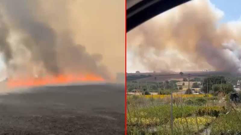 Nilüfer ilçesi Hasanaağa Mahallesi’ndeki buğday tarlasında saat 15.00 sıralarında çıkan yangın, rüzgarın da etkisiyle kısa sürede büyüdü. Alevler çevredeki ağaçlık alana sıçrarken, ihbarla bölgeye itfaiye ekipleri sevk edildi. Bursa Büyükşehir Belediyesi İtfaiye Daire Başkanlığı ekipleri ile çiftçilerin yangını kontrol altına alma çalışmaları devam ediyor.