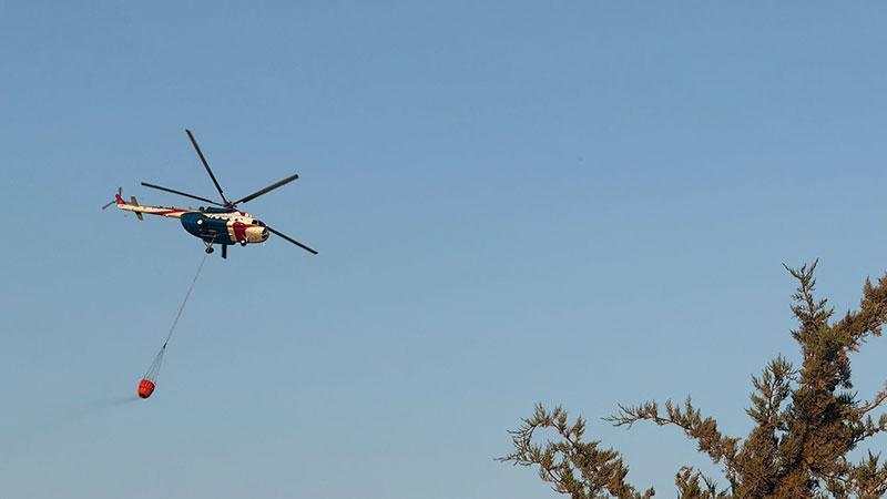 HELİKOPTER TELLERİN ALTINDAN GEÇİP YANGINA MÜDAHALEYE DEVAM ETTİ