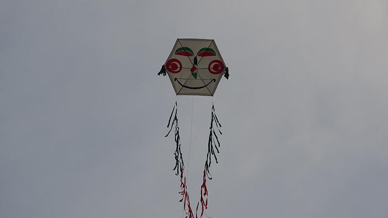 Bursa İl Müftülüğü Kültür ve Sanat tiyatro ekibi, İsrail’in Gazze’de yaptığı soykırıma dikkat çekmek amacıyla Nilüfer İlçesi Hüdavendigar Kent Parkı’nda üzerinde ay yıldız ve Filistin haritası sembollerinin bulunduğu 15 metre uzunluğunda uçurtma uçurdu. Yaptıkları uçurtmanın özgürlüğü simgelediğini söyleyen Muhammet Meral, “Arkadaşlarımızla birlikte Filistin'deki soykırıma dikkat çekmek için dev bir uçurtma yaptık. Üzerinde sembollerimiz var. Gözleri karpuz yaptık. Burun kısmında Filistin’in işgal edilmemiş hali var. Yanaklarında gülücükler var. Dünyadaki mazlum kardeşlerimizin özgür olup gülmelerini umut ediyoruz” dedi.