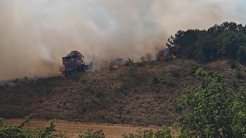 Bursa’nın Yenişehir ilçesinde buğday tarlasında çıkıp, ormana sıçrayan yangını söndürme çalışmaları sürerken, tarladaki bir biçerdöver alevlerin arasında kaldı. Biçerdöverin yandığı anlar ile helikopterlerin yangına havadan müdahalesi kameralara yansıdı.