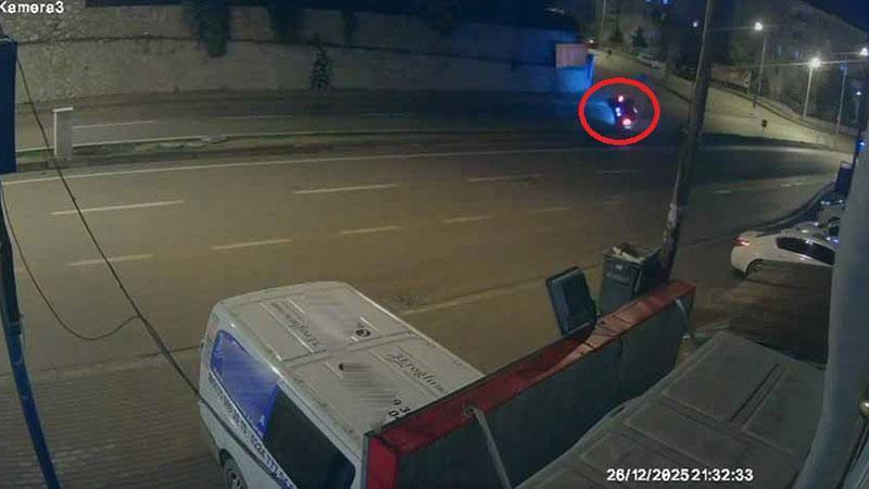 Kaza anı çevredeki bir iş yerinin güvenlik kamerasına yansıdı. Çevredekilerin ihbar üzerine kaza yerine sağlık ve polis ekipleri sevk edildi.