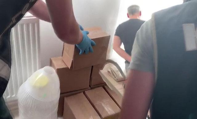 Kaçakçılık ekiplerinin yaptığı operasyon polis kameraları tarafından görüntülendi. Polis ekiplerinin eve gelmesi ve yaptığı aramalarda kutular içinde bulunan cinsel içerikli ilaç hammaddesi ele geçirilmesi kaydedildi.