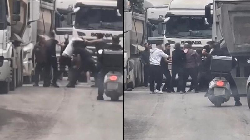 Büyükçekmece'de TIR şoförlerinin tekmeli yumruklu sopalı kavgası kamerada