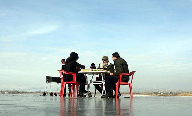 Van’da etkili olan soğuk hava Van Gölü'nün tatlı su kaynaklarına yakın olan Erciş sahillerinin bir bölümünün donmasına neden oldu. Bunu fırsata çeviren bir aile de buz üzerinde mangal yakıp, piknik yapmanın keyfini yaşadı.