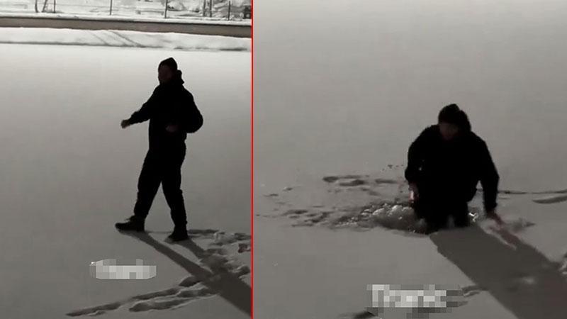 Kar yağışının etkisini kaybetmesinden sonra havaların soğuduğu Muş’ta parklardaki göletlerin yüzeyi buzla kaplandı. Yeşilyurt Mahallesi’nde, yüzeyi donan parkın göletinde yürüyen kişi, bir taraftan da dans etmeye başladı. Bir süre gölette yürüyen kişi, buzun kırılmasıyla suya düştü. Beline kadar suya giren kişinin yaşadıklarını arkadaşı da cep telefonu kamerasıyla görüntüledi.