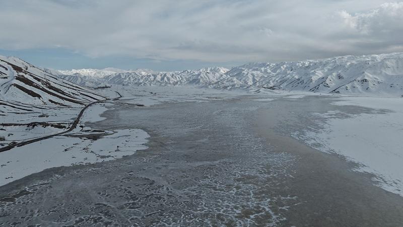 Kısmen buzla kaplı sazlık alan, doğa fotoğrafçıları Erkan Çapraz ve Rahmi İyinç tarafından dronla görüntülendi. Bölgenin dört mevsim ayrı bir güzelliğe büründüğünü belirten Rahmi İyinç, "Bugün hava biraz soğuk. Sazlığın tabanında biriken suların büyük bölümü halen donmuş halde. Biz de bu manzarayı görüntülemek için buradayız" dedi.