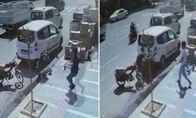 Şanlıurfa’da, bir kadının market önüne bıraktığı, içinde 2 yaşındaki çocuğunun olduğu bebek arabası kendiliğinde hareket etti. Bir market çalışanı caddeye doğru giden bebek arabasını koşarak yakalarken, o anlar güvenlik kamerasına yansıdı.