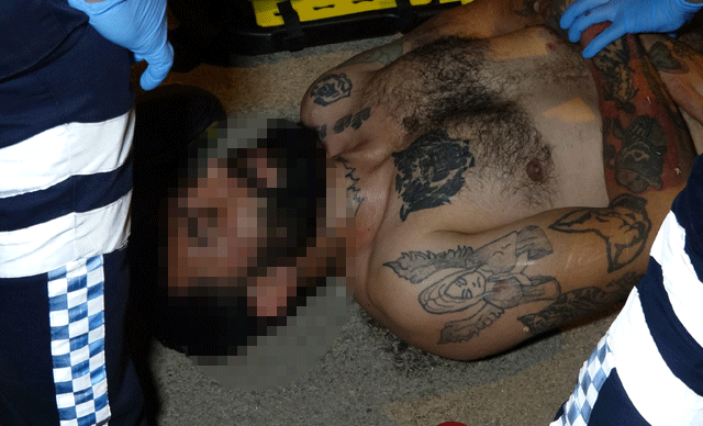Bekçilerden birini de elindeki şişeyle kovalayan Erkan İ., havaya uyarı ateşi açılarak durdurulmak istendi. Erkan İ., ısrarla saldırı girişiminde bulunmaya devam edince, bekçilerden biri sağ bacağından tabancayla vurdu.