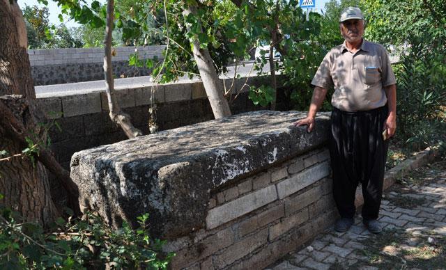 Mahalle sakinlerinden Mehmet Kaçar (60), "Mahallemiz sınırlarında Örtülü Kalesi'ni de içerisine alan Kavaklık mevkisinde, birçok oyma ve kesme taş mevcut. Camimizde musalla taşı ihtiyacı olunca, biz de mahalle sakinleri olarak traktörle giderek bu taşı kırmadan, traktöre yükleyerek buraya getirip yerleştirdik. 1984 yılında bu yana da musalla taşı olarak kullanıyoruz. İki yıl önce mahallemizi ziyaret eden bazı kişiler tarafından taşın Roma dönemine ait lahit taşı yani mezar kapağı olduğunu söylediler. Taşı tekrar aldığımız yere götürmeyi düşündük, ama kırılacağı endişesiyle vazgeçtik. Burada sağlam duruyor ve bizler de korunmasına özen gösteriyoruz" dedi.