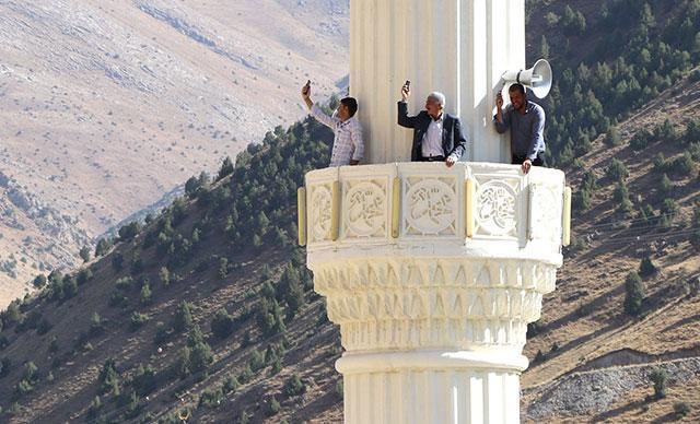 Caminin minaresi ve tepelere çıkarak görüşme yapıyorlar