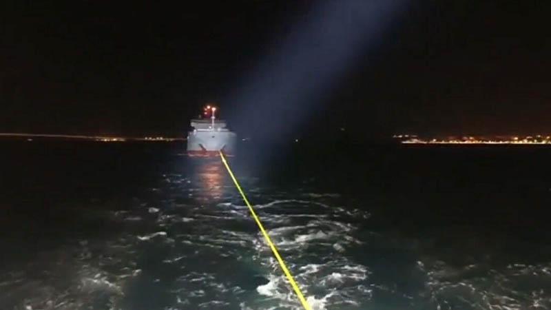 Çanakkale Boğazı'nda arızalanan gemi, römorkörle yedeklenerek demirletildi