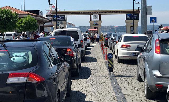 Çanakkale’de 9 günlük Ramazan Bayramı tatilini fırsat bilerek yola çıkan tatilcilerin dönüşü erken başladı. Ramazan Bayramın son günü trafikte yoğunluğa takılmak istemeyen tatilciler, bayramın 2'nci gününde feribot iskelesinde yaklaşık 1 kilometrelik araç kuyruğu oluşturdu.