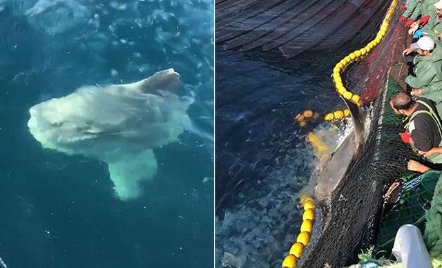 Çanakkale Boğazı’nın Güzelyalı köyü açıklarında sardalya avı için gırgır teknesinden bırakılan ağlara pervane balığının girdiği görüldü. Teknedekilerin birçoğu balığın ne olduğunu anlayamadı. Teknenin kaptanı Nadir Karabiber, ay balığı olarak da bilinen yaklaşık 500 kilo ağırlığındaki balığı ağdan kurtarmak için büyük çaba harcadı. Ters döndürülerek ağın dışına çıkarılan dev balık, denize geri bırakıldı.