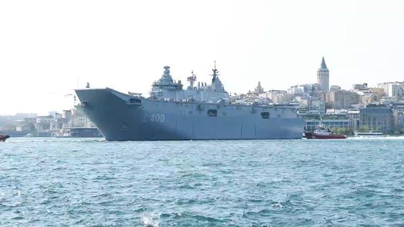 Çanakkale'den yola çıkan TCG Anadolu, İstanbul'a ulaştı