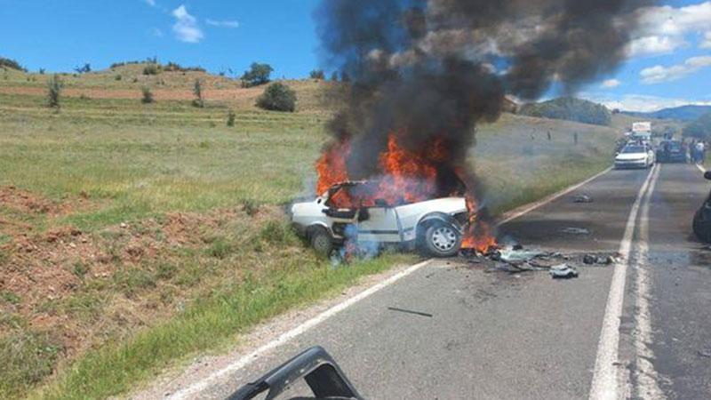 Çankırı'da hafif ticari araçla kafa kafaya çarpıştıktan sonra alev alarak yanan otomobilin sürücüsü hayatını kaybetti. Kazada hafif ticari araç sürücüsü de yaralandı.