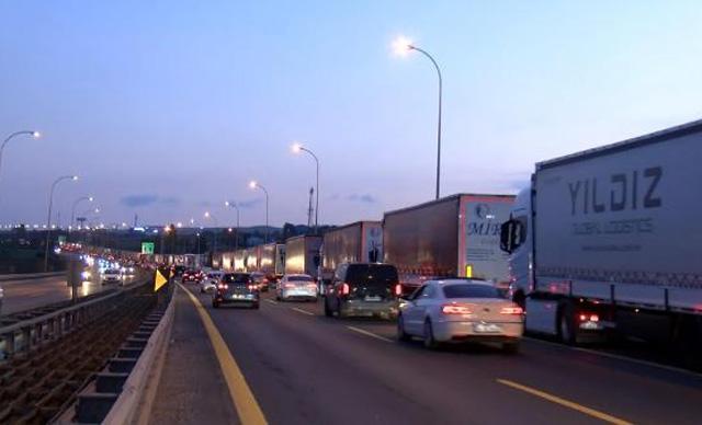 Gümrük girişindeki yoğunluk nedeniyle TIR kuyruğu TEM Otoyolu'na kadar uzadı.