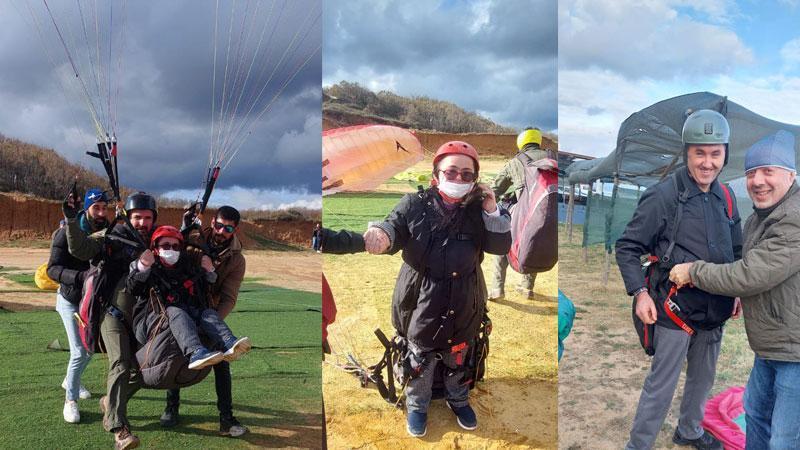 Türk Hava Kurumu (THK) Sportif Havacılık Kulübü Başkanı Mehmet Mamaş, 3 Aralık Dünya Engelliler Günü'nde dowm sendromlular ve bedensel engellilerle birlikte yamaç paraşütü yaptı.