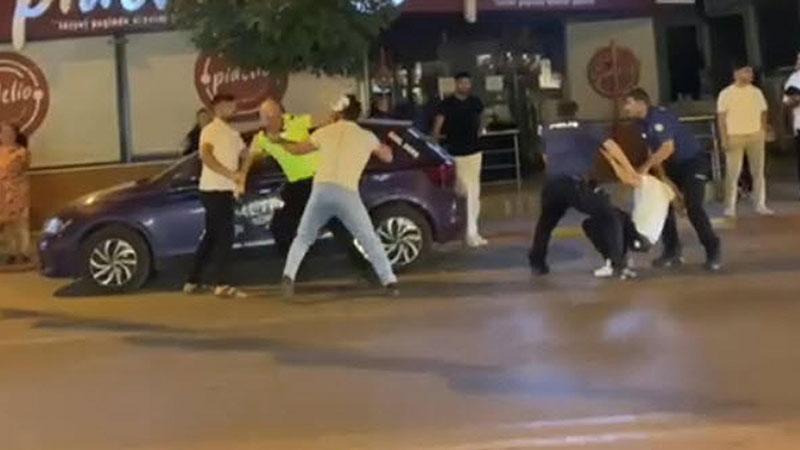 Ceza yazan polise saldırdılar; o anlar kamerada