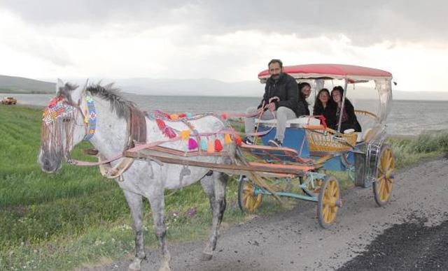 Doğu Anadolu'nun en büyük ikinci gölü olan Çıldır Gölü çevresinde atlı fayton gezileri başladı.