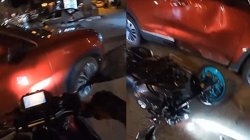 Cipe çarpan motosikletin sürücüsü yaralandı; kaza kask kamerasında