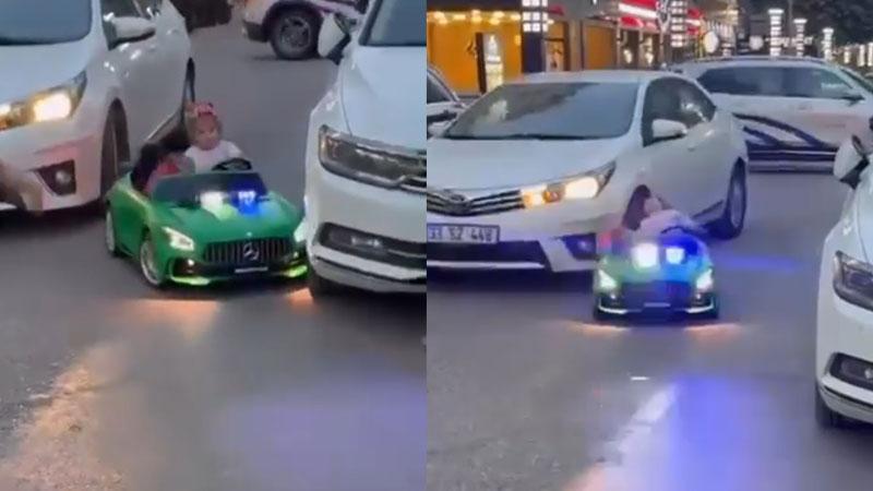 Kaza, Yenişehir ilçesi Kushimoto Sokağı'nda meydana geldi. Yolda küçük yaşlarda bir kız çocuğunun kullandığı akülü araca, dönüş yapan otomobil çarptı. Savrulan akülü araç, park halindeki bir araca çarptı. Çevredekilerin uyarısıyla otomobil sahibi aracını durdurdu. Kaza, çocuğun ailesi tarafından cep telefonuyla görüntülendi. Kazada şans eseri çocuk yara almadı.