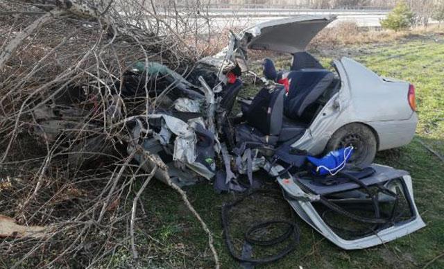 Çorum'da sürücüsünün kontrolünden çıkan otomobil, yol kenarındaki ağaca çarptı. Demir yığınına dönen otomobildeki Yaşar Yılmaz (24) ile akrabası Zübeyde Yılmaz (43) yaşamını yitirdi.