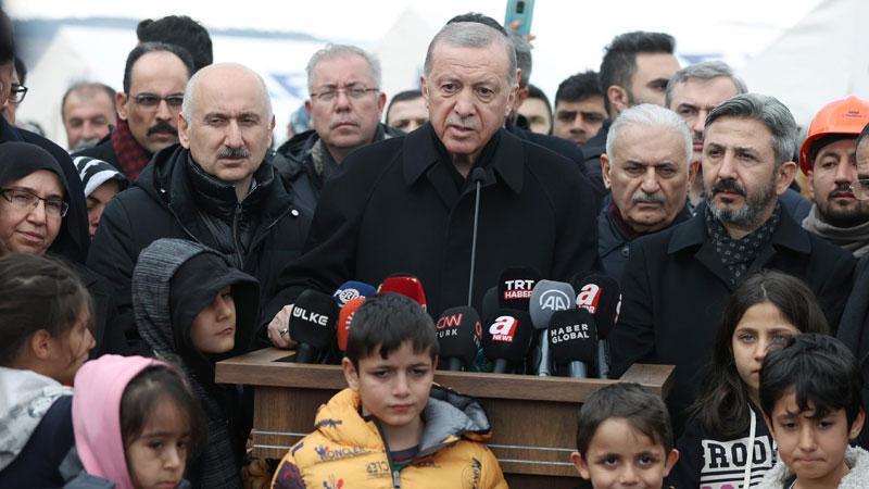 Erdoğan, yıkımın nispeten sınırlı kaldığı Şanlıurfa ve Kilis illerinde arama-kurtarma çalışmaların tamamlanıp enkaz kaldırma çalışmalarına geçildiğini ifade ederek, "Diğer illerimizdeki arama-kurtarma çalışmalarını altında insan olan hiçbir bina bırakmayacak kararlılığıyla sürdürüyoruz. Bir yıl içerisinde inşallah bu yıkılan binaları yeniden elimizdeki tip projelerle inşa edecek, sahiplerine teslim edeceğiz. Bu arada 10’ar bin lira vatandaşlarımıza vereceğiz. Bütün bunların yanında çadırlarda kalmayan, kalmak istemeyen vatandaşlarımıza da kira bedelini ödemek suretiyle konutlara geçmelerini sağlayacağız. İster Adıyaman’da gidilebilecek konutlar varsa oralarda kira olarak veya farklı illere geçmek suretiyle farklı illerde kiralama suretiyle 1 yıl itibarıyla buralarda benim vatandaşlarım kalabilecek. Bu arada da biz inşallah buradaki konutları inşa etmiş olacağız, yapmış olacağız" dedi.