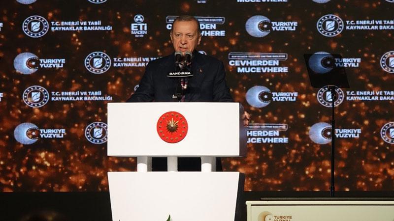 Türkiye'nin yerli otomobili Togg'a değinen Erdoğan, "Elbette Türkiye'nin bir kısmında yaşanan sıkıntının çözümü için ülkenin tamamının yatırımıyla, istihdamıyla, üretimiyle, ayakta kalması, güçlü olması şarttır. Bunun için deprem bölgesindeki şehirlerimizi ayağa kaldırırken; ülkemizi hedeflerine yaklaştıracak diğer projelerimizi de ihmal etmiyoruz. Milletimizin 65 yıllık hayali olan Türkiye'nin otomobili, bunlardan biridir. Geçtiğimiz günlerde Togg, ön siparişleri almaya başladı. Hamdolsun çok kısa sürede de rekor bir talep oranına ulaştı. Ay sonundan itibaren teslimatları peyderpey gerçekleştireceğiz" dedi. Kütahya Emet'te de yeni bir bor karbür tesisi kurulacağını söyleyen Erdoğan, "Buradan elde ettiğimiz tecrübeyle Kütahya Emet'te, 5 bin ton üretim kapasiteli yeni bir bor karbür tesisi daha kuracağız" diye konuştu.