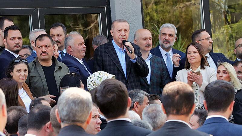 Erdoğan, ziyaret sonrası belediye önünde toplananlara hitap etti. Erdoğan, "Yola çıkarken bizim eğitim, sağlık, adalet, emniyet, enerji, ulaşım, tarım, bütün bu alanlarda çok büyük sözümüz vardı ve hamdolsun bu sözlerimizi büyük ölçüde yerine getirdik. Sağlıkta, hastanelerimizde attığımız adımlarla, eğitimde attığımız adımlarla Türkiye'de 76 üniversitemiz varken şu anda 207 üniversitemiz var. Üniversitemizin olmadığı ilimiz yok. 81 vilayetin tamamında artık üniversitemiz var. Yani benim Iğdır'daki kardeşim, Hakkari'deki kardeşim, Muş'taki kardeşim, çocuğunu üniversiteye göndermek için İstanbul'a, Ankara'ya değil. Artık Muş'ta üniversite var. Iğdır'da üniversite var. Artık oradaki üniversitelerde çocuklarını okutma şansı var" diye konuştu.