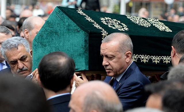 Eyüpsultan Camii'nde öğle vakti düzenlenen cenaze törenine, Erdoğan'ın yanı sıra, Cumhurbaşkanı Yardımcısı Fuat Oktay, Dışişleri Bakanı Mevlüt Çavuşoğlu, İçişleri Bakanı Süleyman Soylu, Milli Eğitim Bakanı Ziya Selçuk, Sağlık Bakanı Fahrettin Koca, Sanayi ve Teknoloji Bakanı Mustafa Varank, Ulaştırma ve Altyapı Bakanı Cahit Turhan, Enerji ve Tabii Kaynaklar Bakanı Fatih Dönmez, Tarım ve Orman Bakanı Bekir Pakdemirli, AK Parti Genel Başkanvekili Numan Kurtulmuş, AK Parti Genel Başkan Yardımcısı Vedat Demiröz, AK Parti Grup Başkanvekili Mehmet Muş, İstanbul Valisi Ali Yerlikaya, İTO Başkanı Şekip Avdagiç, İstanbul Büyükşehir Belediye Başkanı Mevlüt Uysal, AK Parti İstanbul Büyükşehir Belediye Başkan adayı Binali Yıldırım da katıldı.