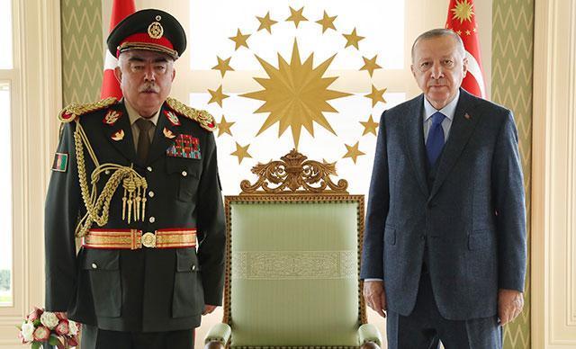 Cumhurbaşkanı Recep Tayyip Erdoğan, Afganistan eski Cumhurbaşkanı Yardımcısı Mareşal Raşid Dostum'u kabul etti.Erdoğan, Dostum ile Vahdettin Köşkü'nde görüştü. Saat 14.30'da başlayan görüşme basına kapalı olarak gerçekleşti.