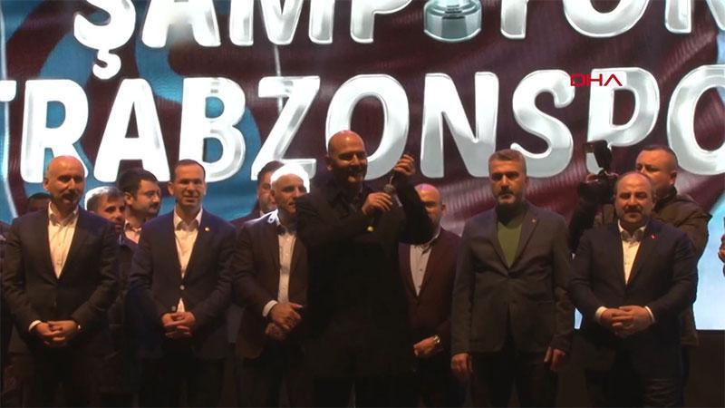Spor Toto Süper Lig Ahmet Çalık Sezonu'nun 35'inci haftasında Fraport TAV Antalyaspor ile 2-2 berabere kalan Trabzonspor, bitime 3 hafta kala 2021-2022 Sezonu şampiyonluğunu ilan etti. Karşılaşmanın ardından İçişleri Bakanı Süleyman Soylu, Ulaştırma ve Altyapı Bakanı Adil Karaismailoğlu, Sanayi ve Teknoloji Bakanı Mustafa Varank ile Ticaret Bakanı Mehmet Muş, Atatürk Alanı’nda bordo-mavili taraftarlarla bir araya geldi. İçişleri Bakanı Süleyman Soylu, yaptığı açıklamada, "Trabzon harika görünüyorsun. Yılların hasretini büyük bir coşkuyla, sevgiyle kutluyorsun, hayırlı olsun. Bugün muhteşem bir tablo ile Trabzonspor hem Trabzonluların hem Trabzonsporluların hem de Trabzonspor’u gönlünde yaşatanların gururunu yaşıyor. Trabzonspor Stadı’nda muhteşem bir şampiyonluk şölenine şahit olduk" diye konuştu.