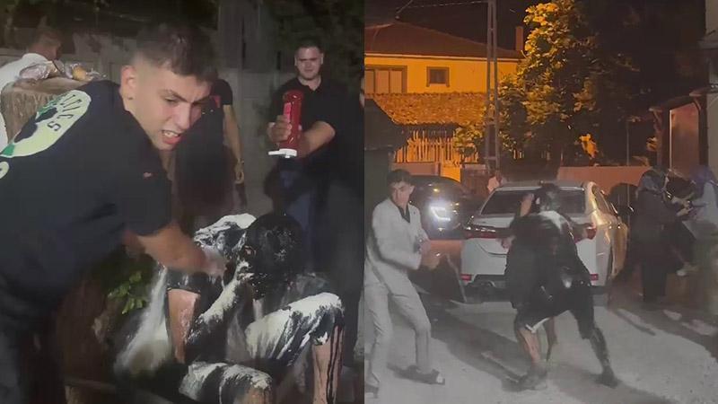 Olay, geçen pazar akşamı Çatalköprü Mahallesi’nde meydana geldi. Düğün sonrası arkadaşları, damat Mert Akalın’a şaka hazırladı. Damadın üzerine motor yağı, sıvı yağ, benzin, un, yumurta ve ketçap dökülürken, o anları cep telefonuyla kayda alındı. Sosyal medyada paylaşılan görüntüler ilgi gördü.