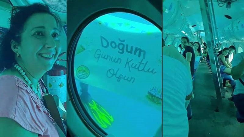 Almanya'da yaşayan Gülten Akbaba, tatili için geldiği Antalya'da, doğum günü sürpriziyle karşılaştı. Kaleiçi Yat Limanı Mermerli Parkı'nda buluşan Akbaba ve arkadaşları, turistik denizaltı ile denizin derinliklerine doğru yolculuğa başladı. Davetliler eğlenirken, denizaltının penceresinin önüne gelen 2 dalgıç, Gülten Akbaba için, 'İyi ki doğdun, doğum günün kutlu olsun' yazılı pankartı açtı.