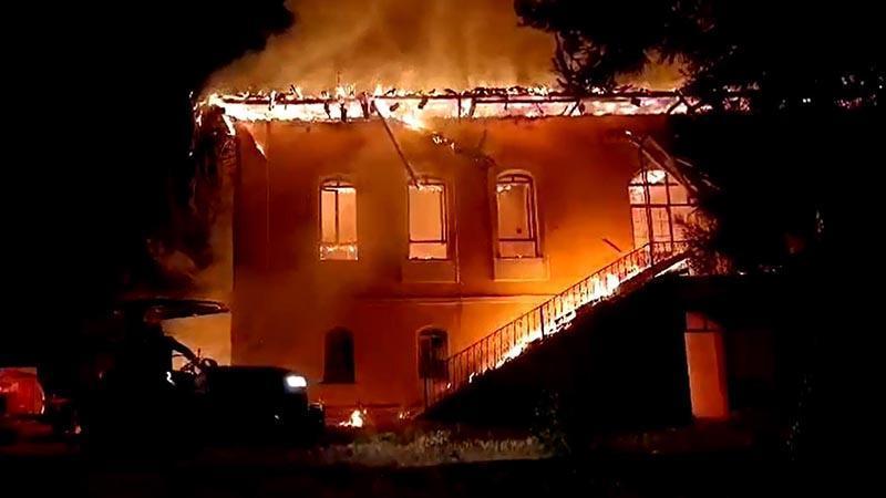 Denizli'de tarihi okul binası çıkan yangında küle döndü