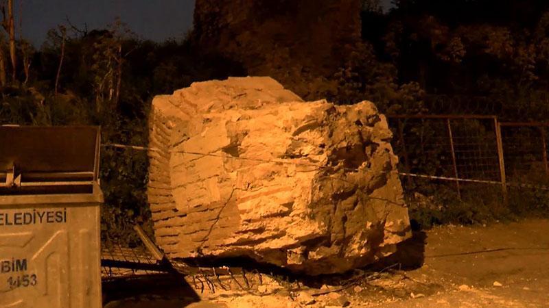 Silivri açıklarında saat 12.49'da meydana gelen 6,2 büyüklüğündeki deprem sonrasında, İstanbul'un tarihi surlarından olan Fatih Surları’ndan kopan büyük bir parça, Sulukule Caddesi üzerine düştü.
