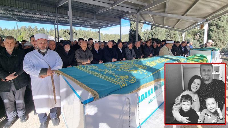 Kahramanmaraş'ın Pazarcık ilçesinde meydana gelen depremin vurduğu Adana'da yıkılan evlerinde hayatını kaybeden Avukat Uğur Uçurum (43), eşi ve ikiz çocukları yan yana toprağa verildi.