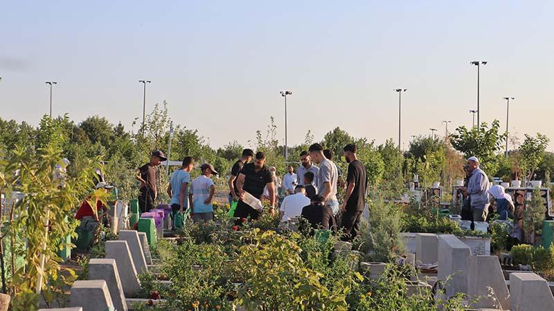 Kahramanmaraş merkezli 6 Şubat'ta meydana gelen depremlerde, Diyarbakır'da hayatını kaybedenlerin yakınları, Kurban Bayramı'nın ilk gününde, bayram namazının ardından Bağlar ilçesindeki Yeniköy Asri Mezarlığı'na gitti. Depremzedeler, yakınlarının mezarlarının bakımını yapıp, dualar etti. Bazıları da gözyaşı döküp, mezar taşlarına sarıldı, mezarlığa gelenlere şeker, gofret ve şerbet ikram edildi.